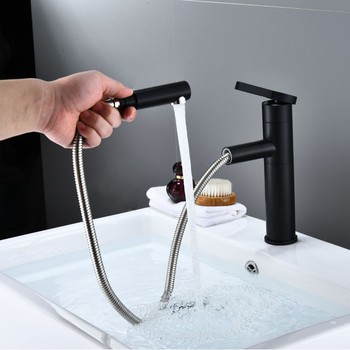 صنابير سوداء بتصميم حديث من الفولاذ المقاوم للصدأ ، صنابير سوداء ، حوض بفتحة واحدة للحمام