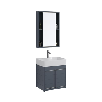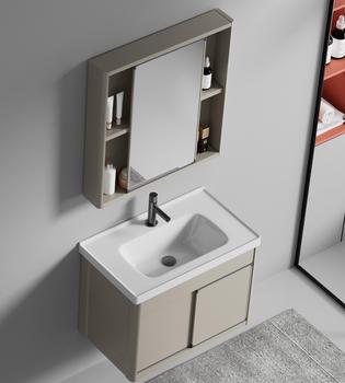 2025 Trend Sanitary Ware Vanidades de baño de aluminio gris mate con fregadero y gabinete de espejo de baño Un juego